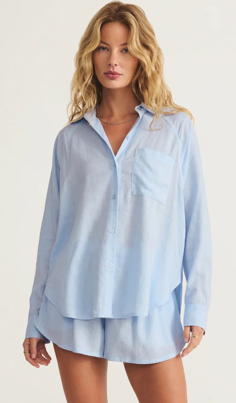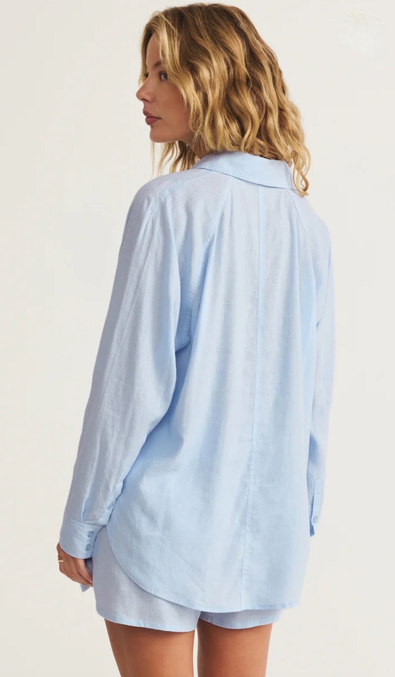 description: you'll love this easy, breezy comfort of this classic linen button-up. with its soft, drapey feel, you can throw it on as a lightweight layer or button it up for an effortlessly elevated look you can wear season after season. option to match in a set with matching shorts .